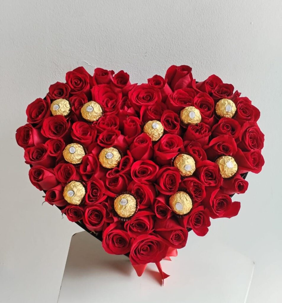 Corazón con Rosas y Ferrero Rocher